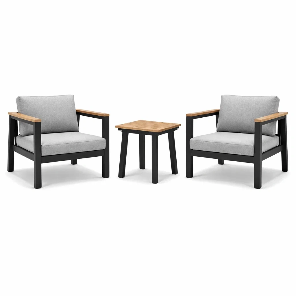 Set da relax piccolo in legno composito grigio con due sedie e tavolino