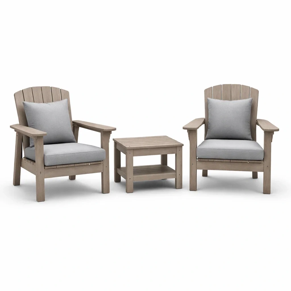 Set da relax piccolo con due sedie Adirondack e tavolino rotondo in resina grigio