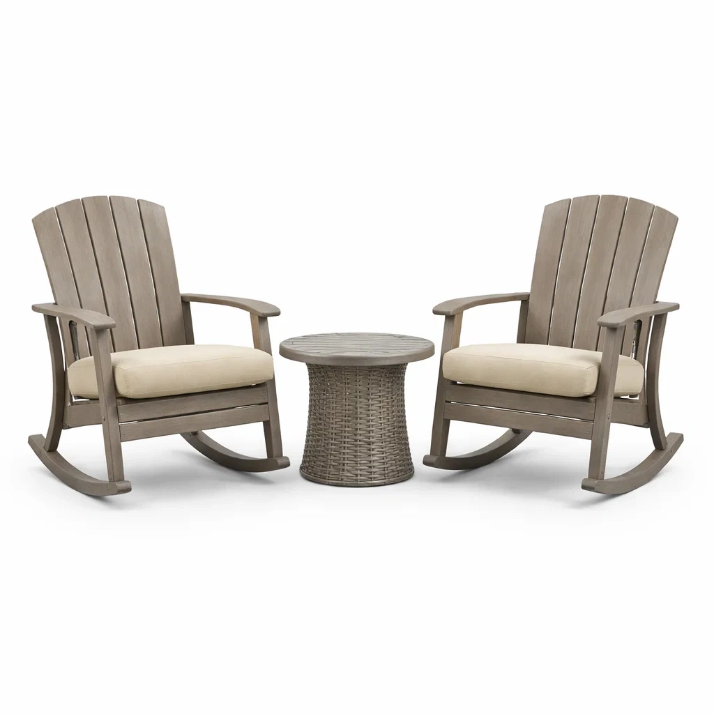 Set da relax piccolo con sedie a dondolo e tavolo in legno massello di acacia marrone