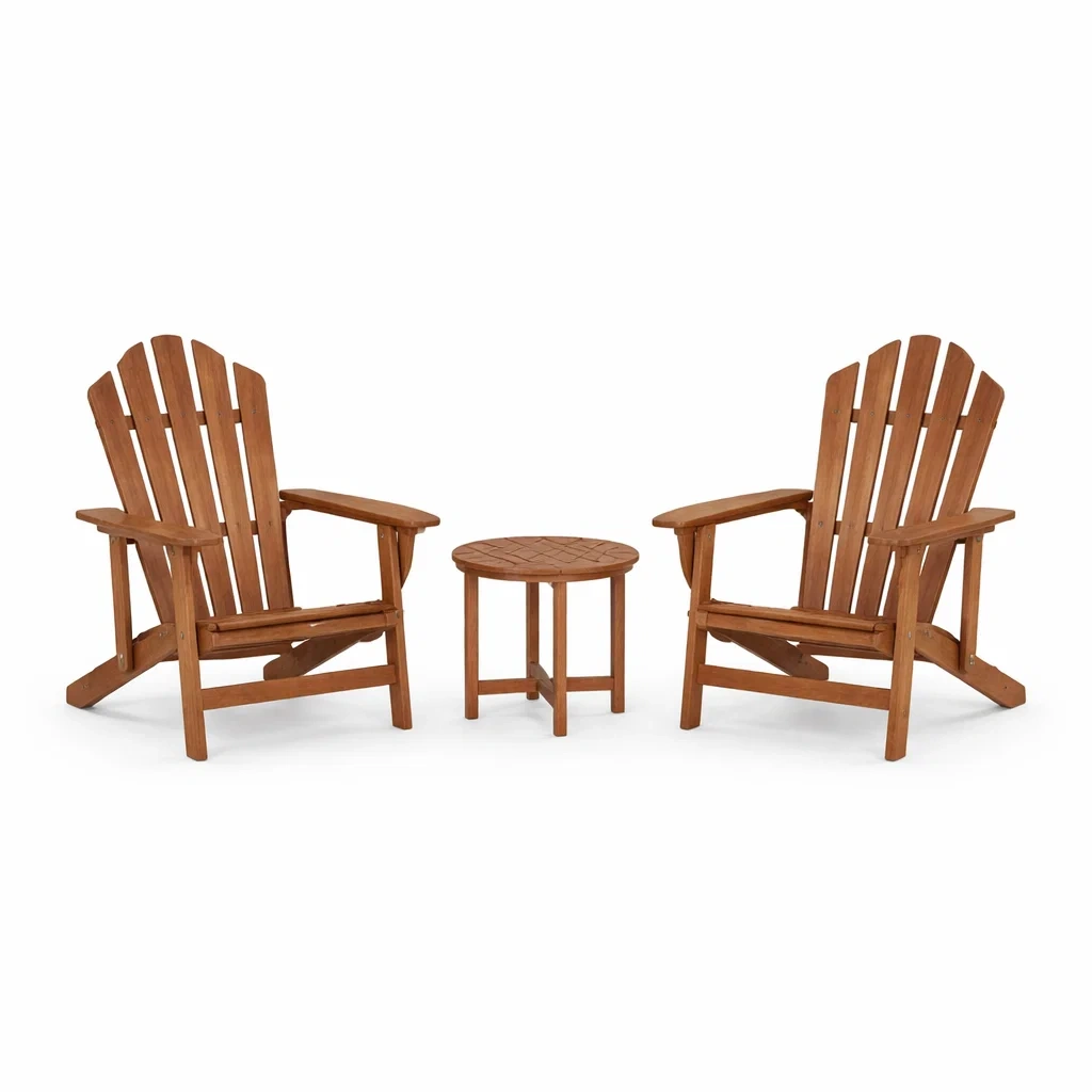 Set da relax piccolo in legno di acacia con due sedie Adirondack e tavolino rotondo
