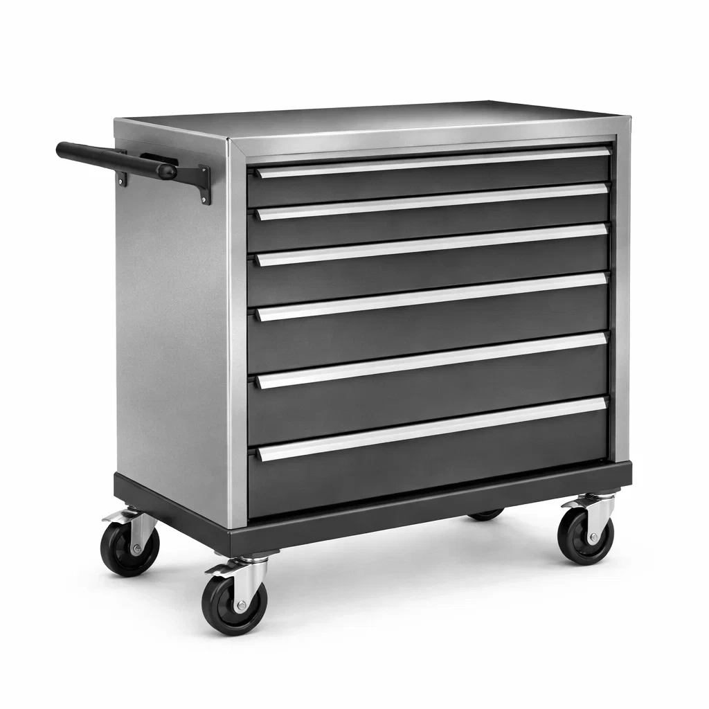 Funzionalità: 6 cassetti, ruote bloccabili, capacità di carico per cassetto 30 kg.